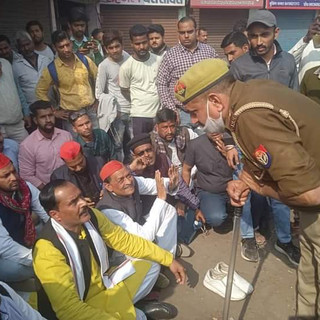 सपा जिलाध्यक्ष तनवीर खां, दुकानदारो के साथ धरने पर बैठ, जताया विरोध